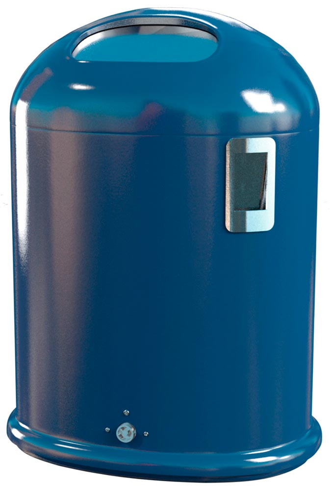 Abfallbehälter oval mit Ascher, Vol. 45 l, aus Stahlblech, BxTxH 425x330x590 mm, mit Federklappe, RAL 5013
