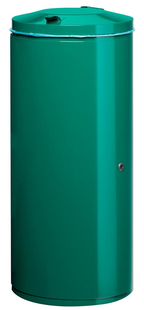 Abfallsammler, Vol. 120 l, Durchm.xH 440x980 mm, kpl. lackiert RAL 6005, inkl. verschließbare Tür mit Doppelbartschloss