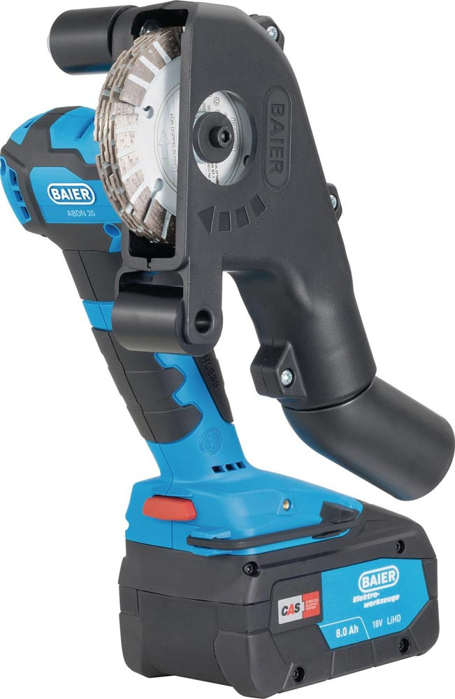 bürstenloser Motor mit optimaler Übersetzung für Mehrscheibentechnik um stegfrei zu Fräsen · Einsatz bei Ton (Dachziegel), Poroton und Verputz · innovative Kunststoffabsaugung · Überlastschutz und Spindelarretierung · ABDN 20 PV mit 5 Diamantscheiben für das stegfreie Fräsen bis 15 mm Breite und 22 mm Tiefe