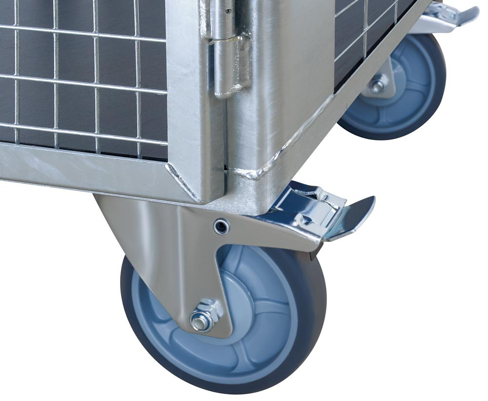 ∙ Anbausatz bestehend aus 2 Bock-/ 2 Lenkrollen mit Feststeller und 1 Bodenplatte, B x T 1250 x 780 mm, feuerverzinkt