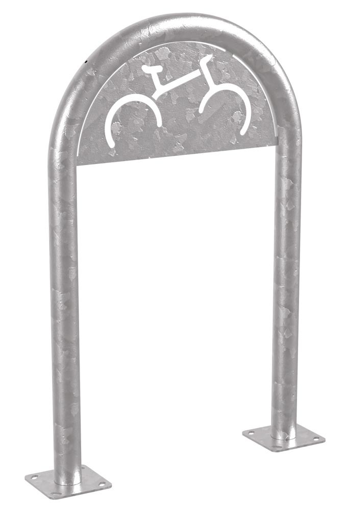 · Universeller und platzsparender Anlehnbügel für Gehsteige · Feuerverzinkt · Ausführung Stahlrohr ø 50 mm · Höhe über Flur: 1000 mm · Breite: 625 mm