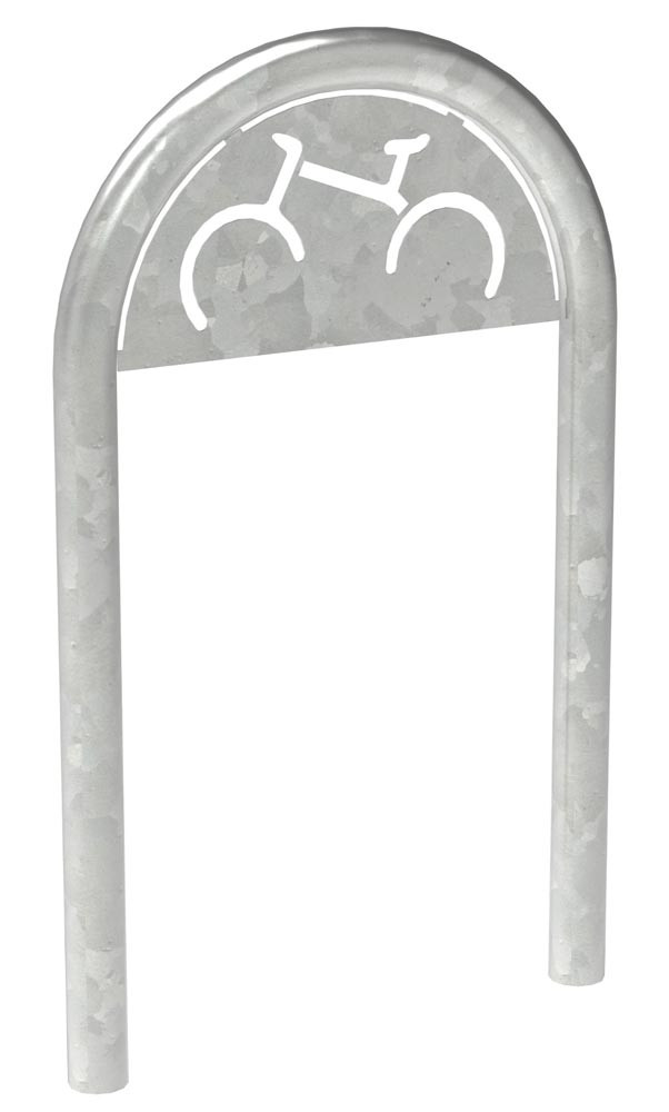 · Universeller und platzsparender Anlehnbügel für Gehsteige · Feuerverzinkt · Ausführung Stahlrohr ø 50 mm · Höhe über Flur: 1000 mm · Breite: 625 mm