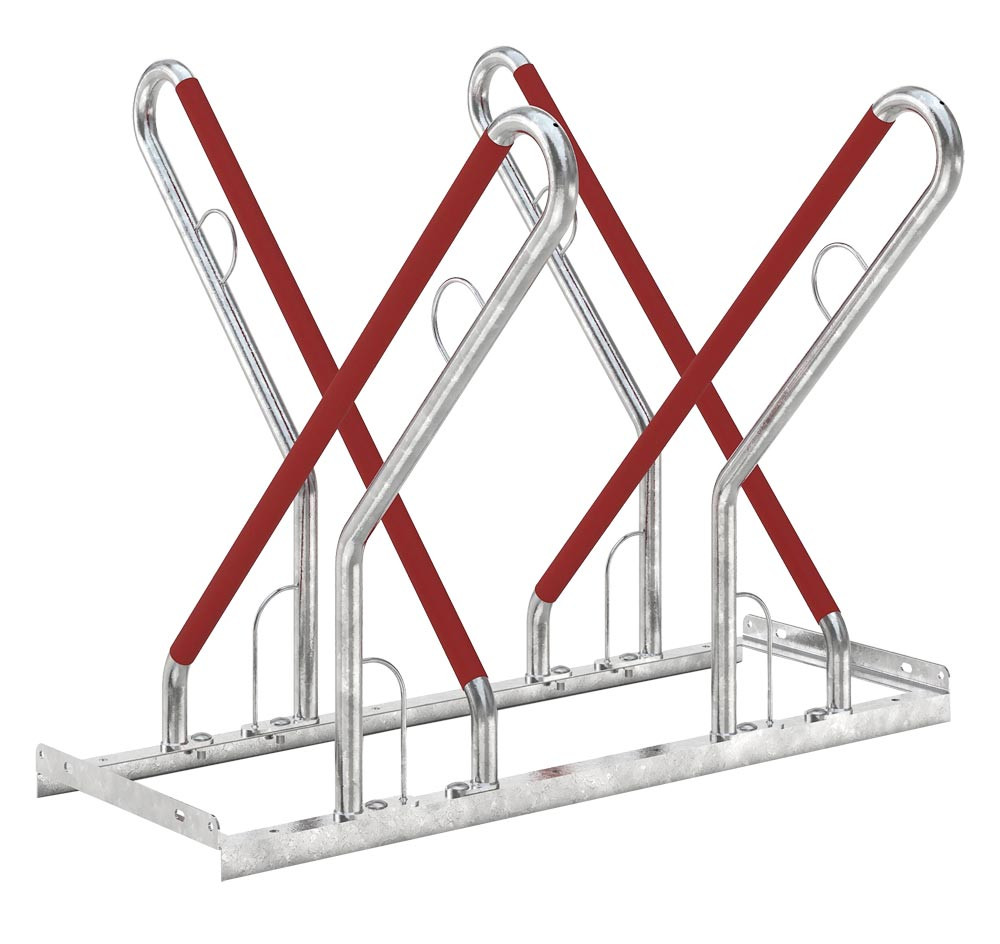 Anlehnparker, Stahl verzinkt, zweiseitige Radeinstellung, Radabstand 540 mm, Tiefstellung, 4er Stand, Länge 1080 mm