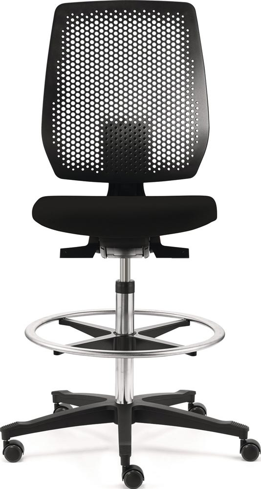 Arbeitsdrehstuhl Tec spot Rollen/Fußring Stoffpolster schwarz Sitz-Höhe 410-570 mm