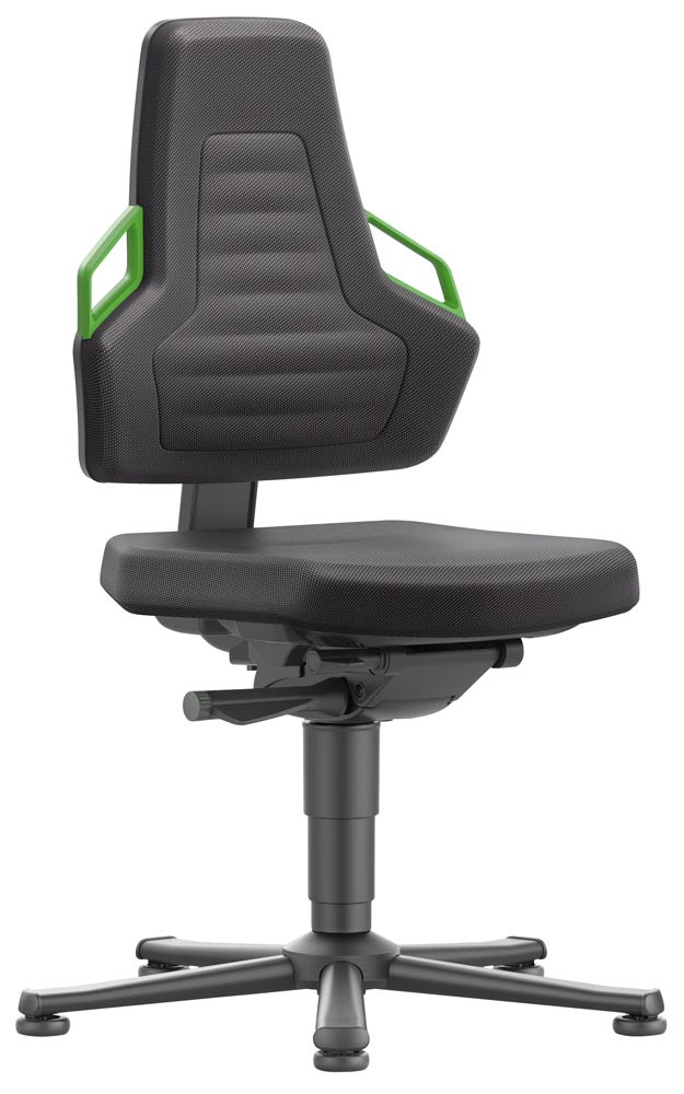 Arbeitsdrehstuhl mit autom. Gewichtregulierung, Sitz Stoff schwarz, Griffe grün, Gleiter, Sitz Höhe 450-600 mm