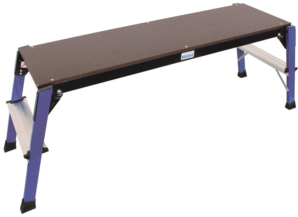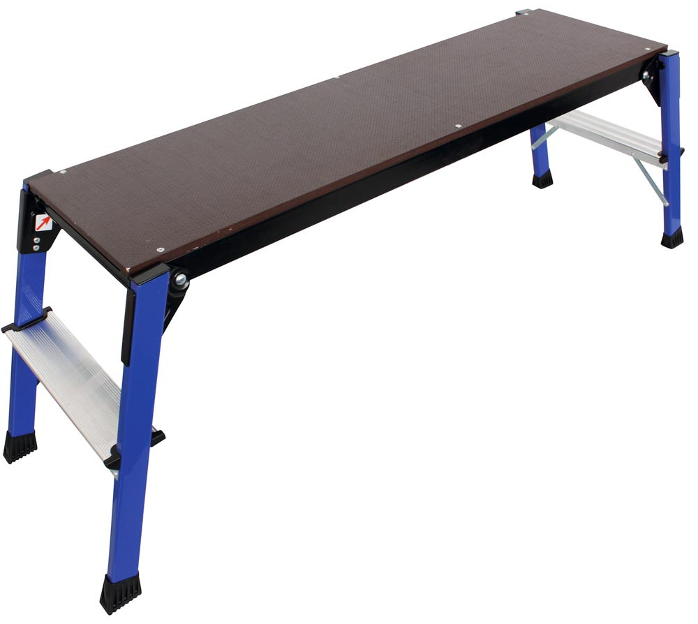 Arbeitsplattform, mit Alu-Holmen blau beschichtet, Phenol-Siebdruck-Platte 1090x385 mm, Traglast 150 kg, Standhöhe 470 mm