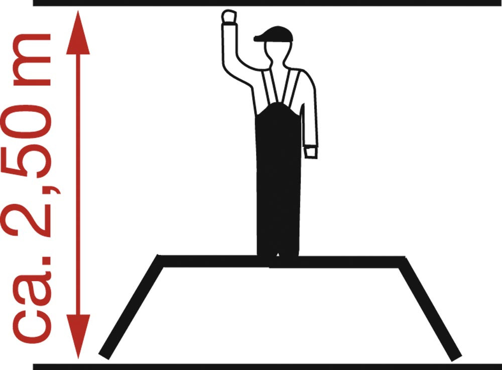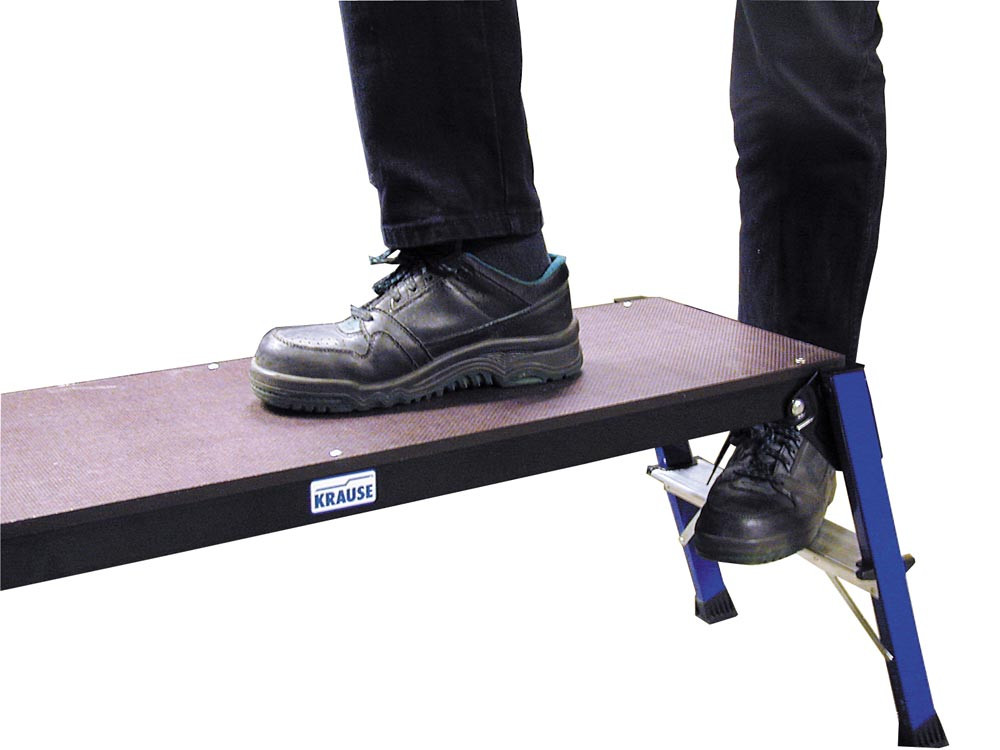 ∙ Breite, rutschsichere Fußkappen für zusätzliche Standsicherheit ∙ Alu-Holme pulverbeschichtet (blau) ∙ Rutschsichere, wasserfeste Phenolharz-Siebdruck-Platte (1090 x 300 mm) ∙ Ausgestattet mit zwei Sicherheitsverriegelungen die automatisch beim Aufklappen einrasten ∙ Platzsparend zu verstauen, handlich und leicht (ca. 8,0 kg) ∙ Platzsparend zu verstauen, handlich und leicht (ca. 8,0 kg) ∙ Profilierte, rutschfeste 80 mm tiefe Alu-Stufen für sicheren Aufstieg und bequemen Stand ∙ 4 stabile Eckverstrebungen für größere Stabilität ∙ Bis Arbeitshöhe von ca. 2,50 m