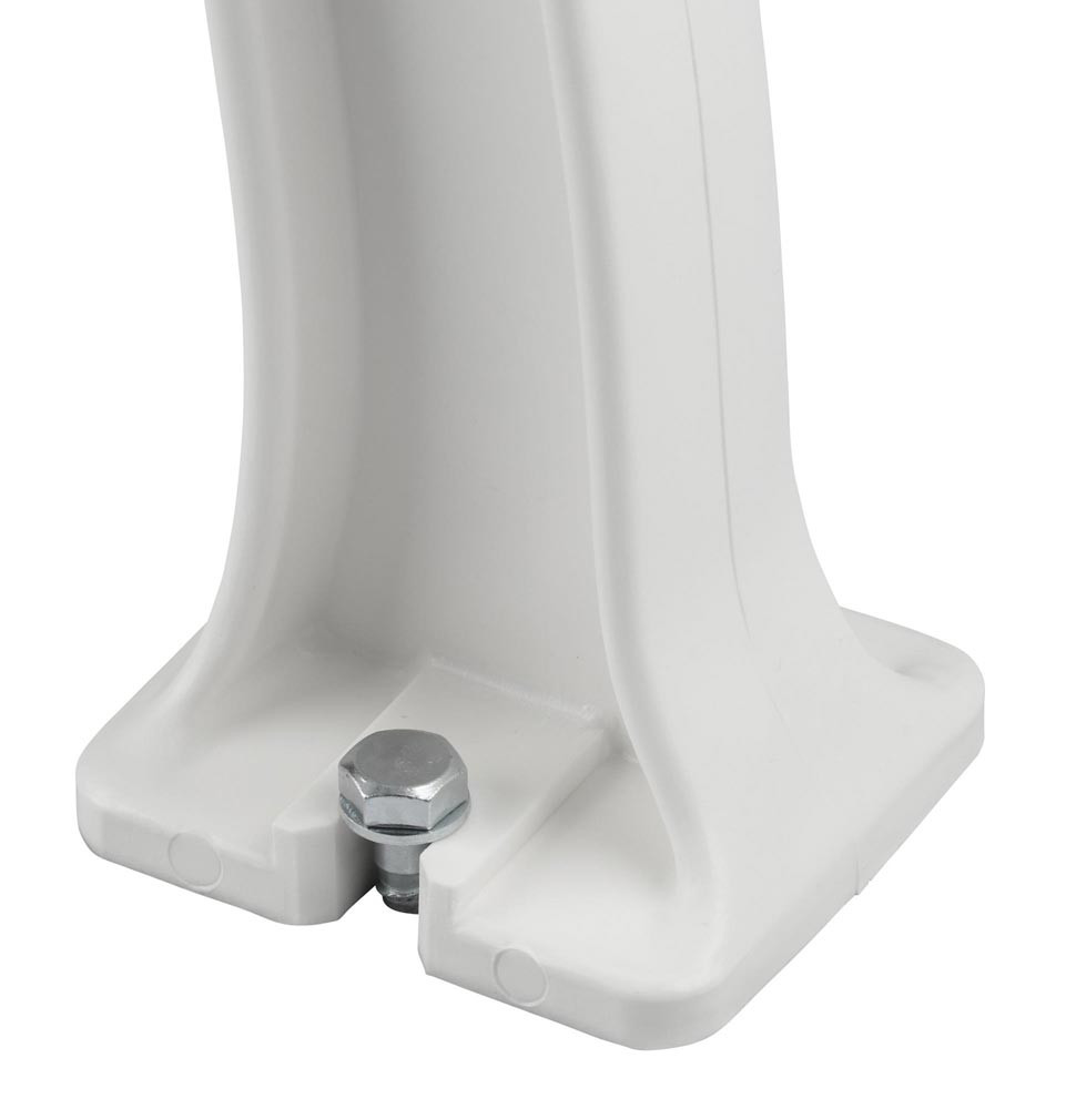 aus UV- und witterungsbeständigem Kunststoff · Füße aus Polypropylen · Sitzhöhe 44 cm · Sitztiefe 38 cm · Sitz- und Rückenleisten aus PVC-Mehrkammerprofilen (50 x 30 mm), 9 Leisten · zur Bodenbefestigung (Befestigungsmaterial nicht inklusive) · teilmontierte Anlieferung