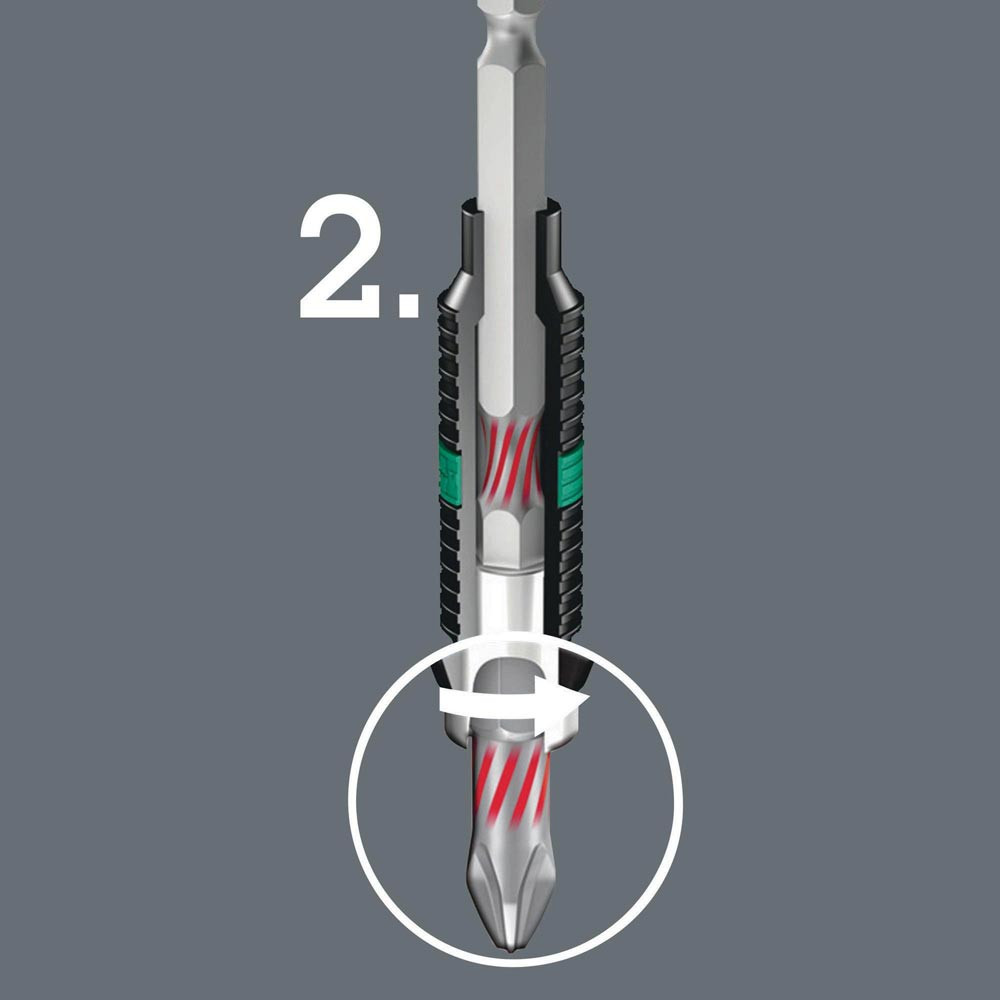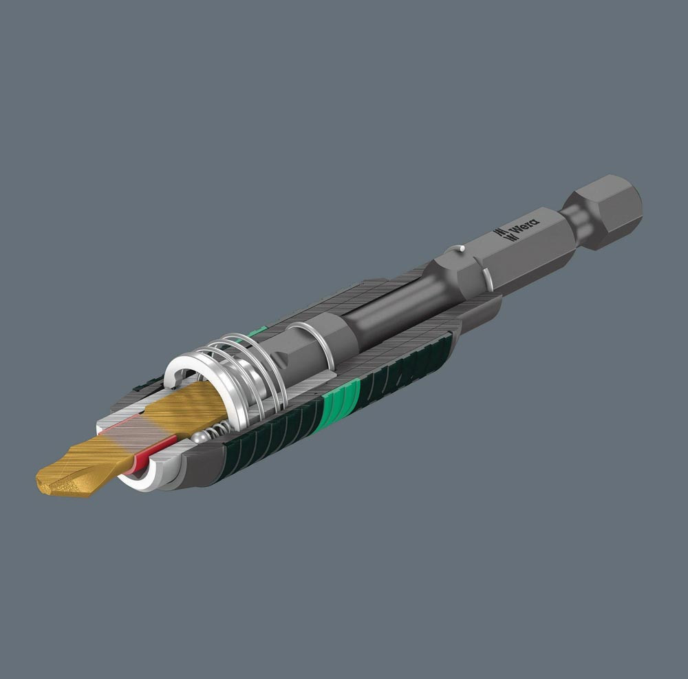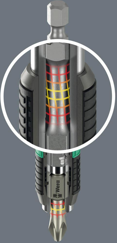 Torsionszone, in die bei Belastungsspitzen kinetische Energie abgeleitet wird · mit weicherer BiTorsionzone zur Vermeidung des Verwindens der Bit-Spitze bei hohen Belastungen, dadurch signifikante Erhöhung der Produktlebensdauer · zähhart · für den universellen Einsatz · 1/4″ Sechskant · passend für Halter nach DIN ISO 1173-D 6,3