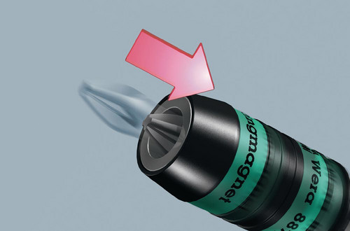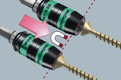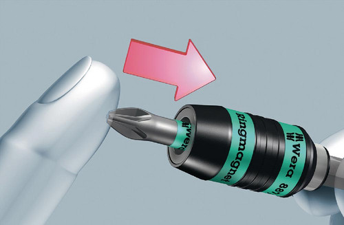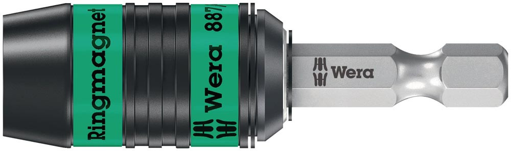 mit starkem Dauerringmagnet und Schnellwechselfutter (Rapidator Technologie) · besonders starker Ringmagnet (hält auch lange und schwere Schrauben) · automatische Verriegelung · Freilaufhülse (erleichtert das Ansetzen der Schraube) · geeignet für 6,3 mm (1/4")-Bits C 6,3 und E 6,3 (auch für lange Bits)