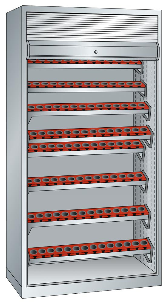 CNC-Rollladenschrank, BxTxH 1038x691x1950 mm, je 8 Werkzeugrahmen mit Träger, 112 Halter ISO-SK 40, RAL 7035 EP531550