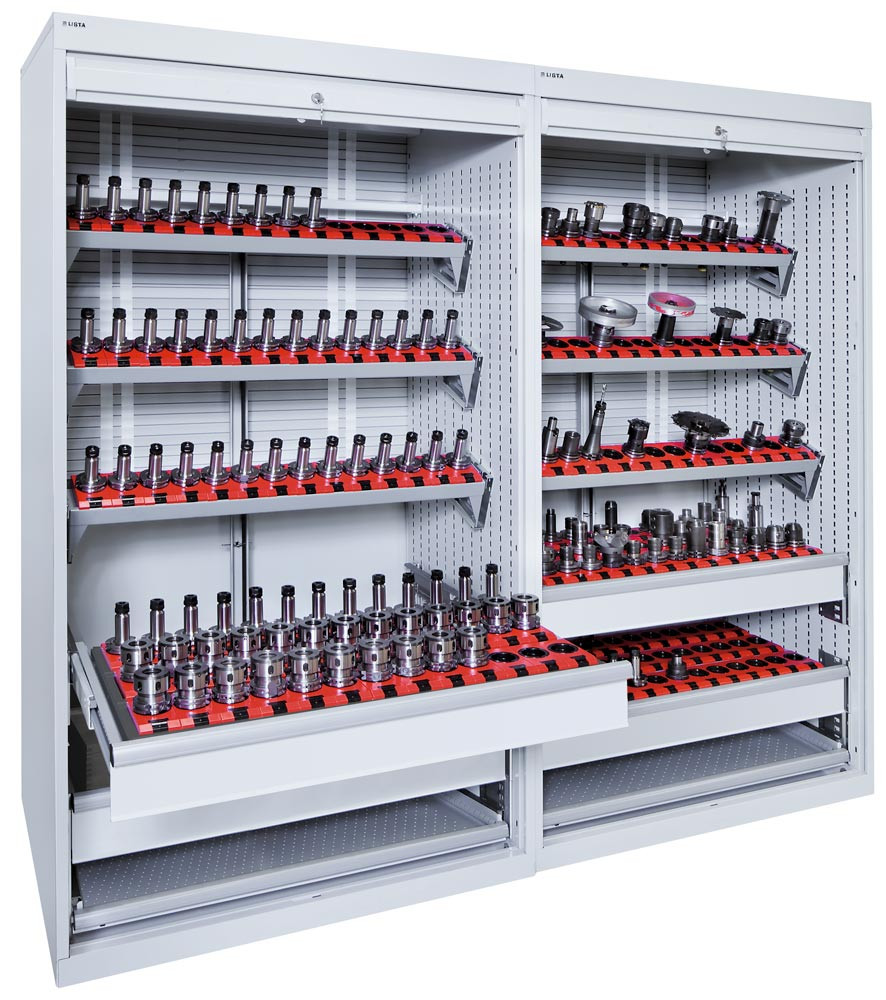 CNC-Rollladenschrank, BxTxH 1038x691x1950 mm, je 8 Werkzeugrahmen mit Träger, 64 Halter ISO-SK 50, RAL 7035 EP531552