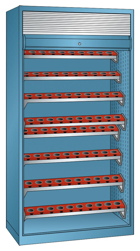 CNC-Rollladenschrank, BxTxH 1038x691x1950 mm, je 8 Werkzeugrahmen mit Träger, 112 Halter ISO-SK 40, RAL 7035 EP531550
