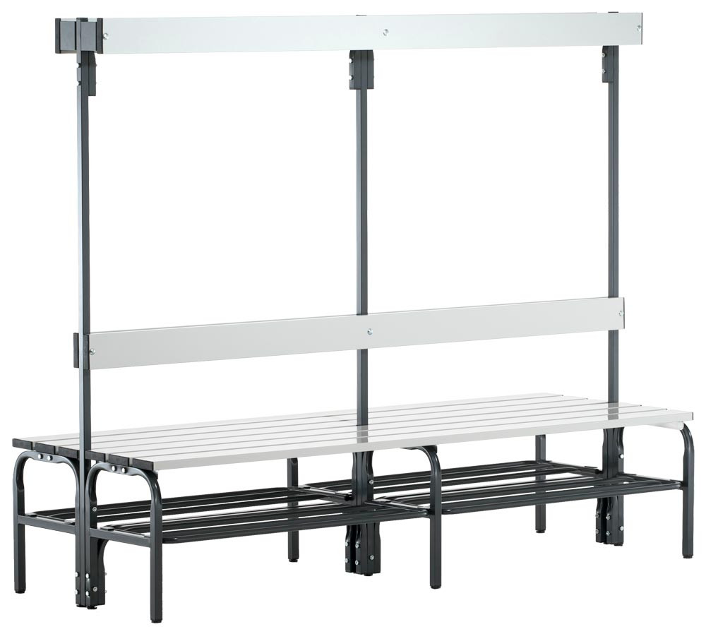 Doppelseitige Garderobenbank, ohne Schuhrost, Stahl/Alu, TxH 700x450 mm, Länge 1015 mm, RAL 7016 EP517506