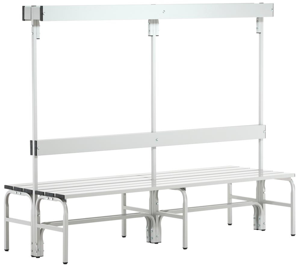 Doppelseitige Garderobenbank, ohne Schuhrost, Edelstahl/Alu, TxH 700x450 mm, Länge 1015 mm, RAL 7035 EP517498