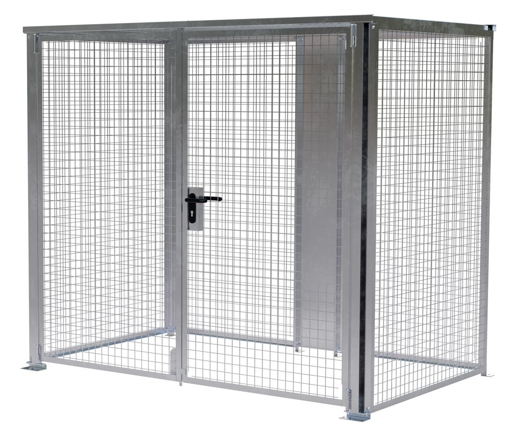 · Zur Aufbewahrung von Gütern unter Verschluss · Stabile Rahmenkonstruktion · Wände, Türen und Dach aus feuerverzinktem Drahtgitter 50 x 50 x 4,8 mm · Abschließbares Doppelflügeltor mit Drücker und Zylinderschloss, B x H 2160 x 1985 mm · Vorbereitet für Bodenbefestigung · Baukastensystem mit Aufbauanleitung zur Selbstmontage