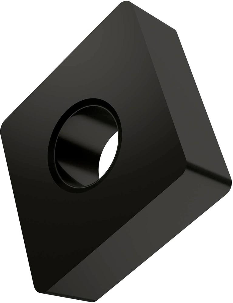 Doppelseitige negative Drehwendeschneidplatte · 80° Rhombisch mit Innenkreisdurchmesser von 12.7mm · 4.76mm Dick · 0.8mm Radius und Indexgenauigkeit nach ISO-Toleranzklasse-M · im Substrat T6310 · PVD beschichtet WC-Co Feinstkornsubstrat im ISO-Bereich K05 -K20 · zum schlichten bis schruppen bearbeiten von Gusseisen