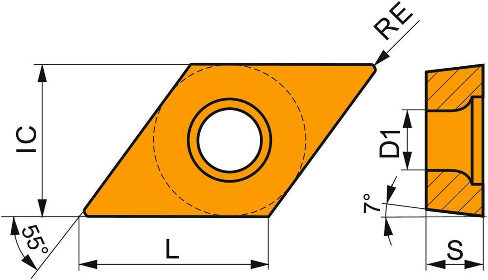 · Formcode Wendeschneidplatte: D - rhombischer 55° eingeschlossener Winkel