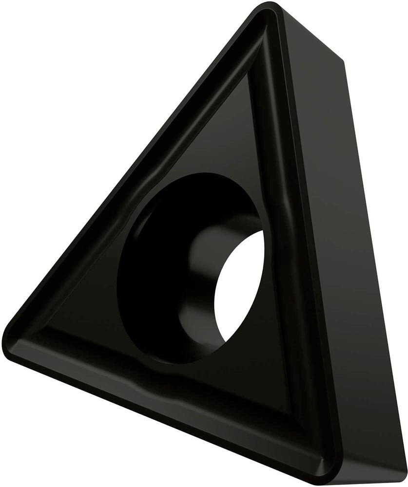Einseitige positive Drehwendeschneidplatte · Triangular mit 7° Freiwinkel · Innenkreisdurchmesser von 9.525mm · 3.97mm Dick · 0.8mm Radius · Indexgenauigkeit nach ISO-Toleranzklasse-M · Spanbrecher RM3 mit verrundeter Schneidkante · im Substrat T9335 · MT-CVD beschichtet functionally graded WC-Co carbide im ISO-Bereich P20 -P45 · zum schlichten bis schruppen bearbeiten von Stählen