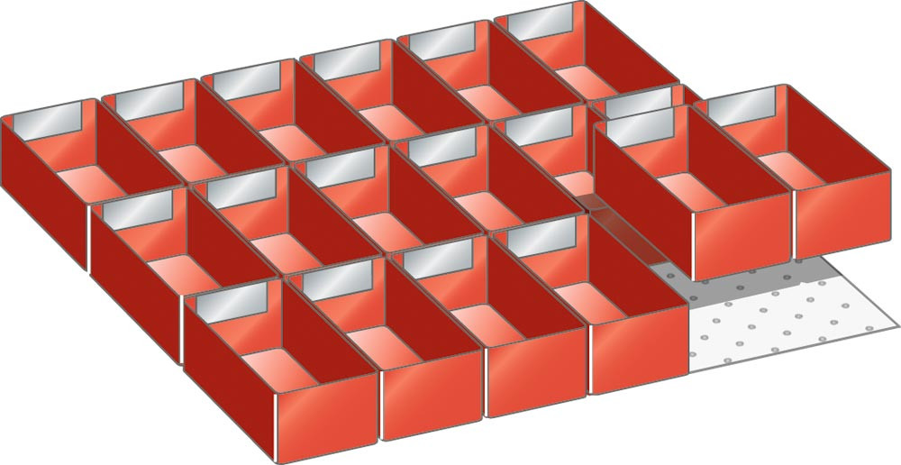 Einsatzkästen, Fronthöhe 100 mm, 18 Kästen 150x75 mm, Schubladennutzgröße BxT 459x459 mm EP525805