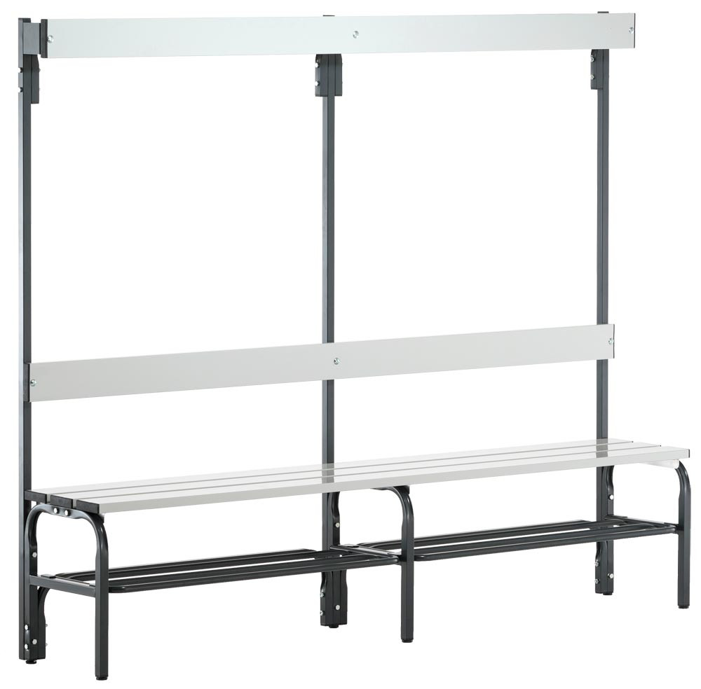 Doppelseitige Garderobenbank, ohne Schuhrost, Stahl/Alu, TxH 700x450 mm, Länge 1015 mm, RAL 7016 EP517506