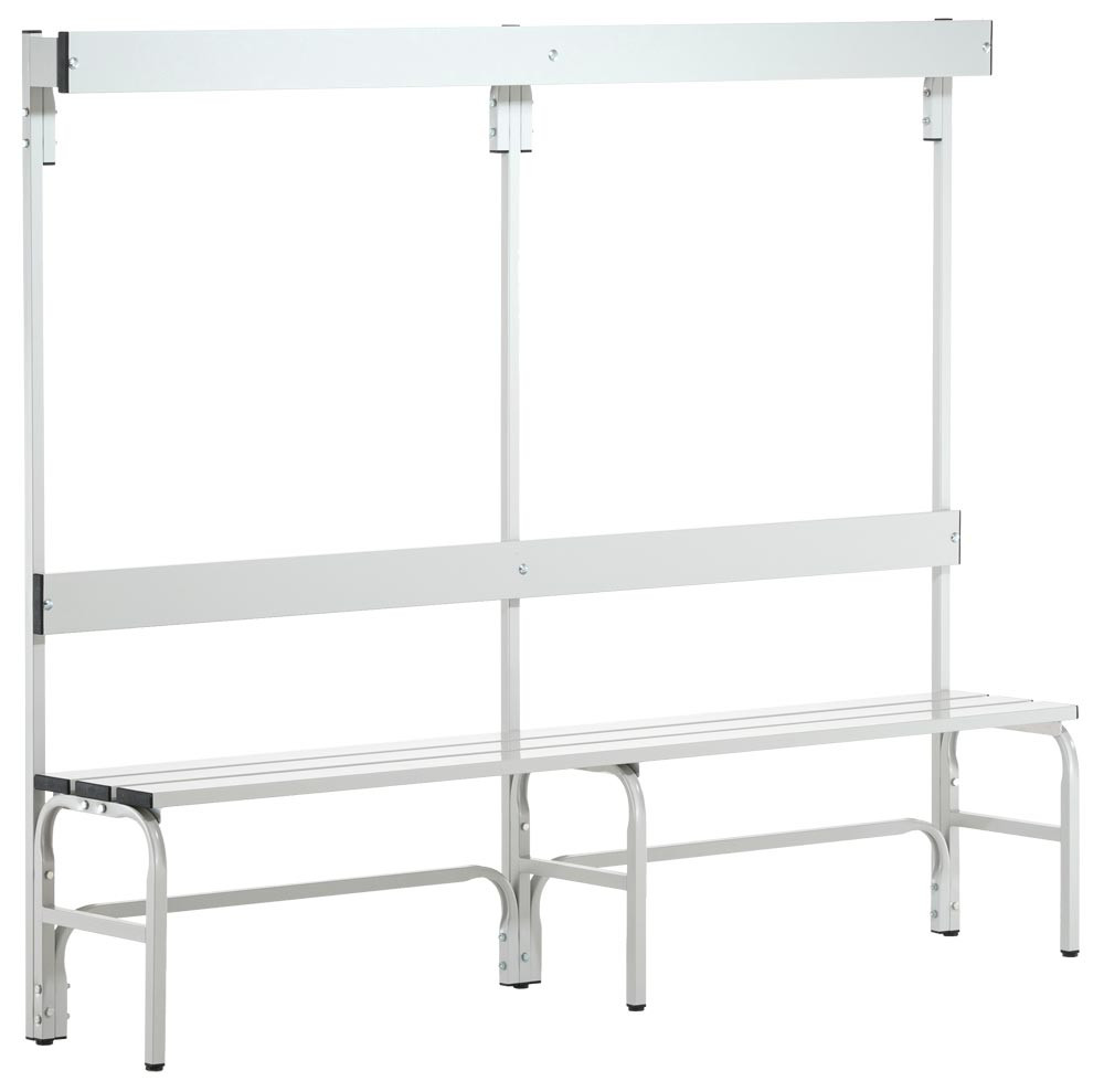 Doppelseitige Garderobenbank, ohne Schuhrost, Edelstahl/Alu, TxH 700x450 mm, Länge 1015 mm, RAL 7035 EP517498