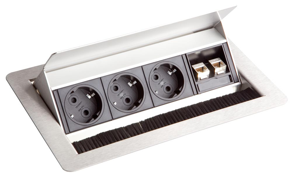 Elektrifizierung für Konferenztische SMILLA, 3 Steckdosen und 2 Netzwerkbuchsen