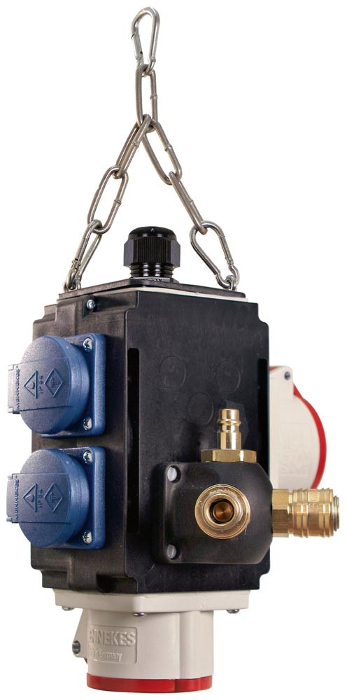 Energiewürfel, 2 Schutzkontaktsteckdosen 16A, 230V, 2xCEE Steckdose 16A, 400V, 5-polig, mit Druckluftanschluss, für Leitung 3x1,5 mm-5x4 mm