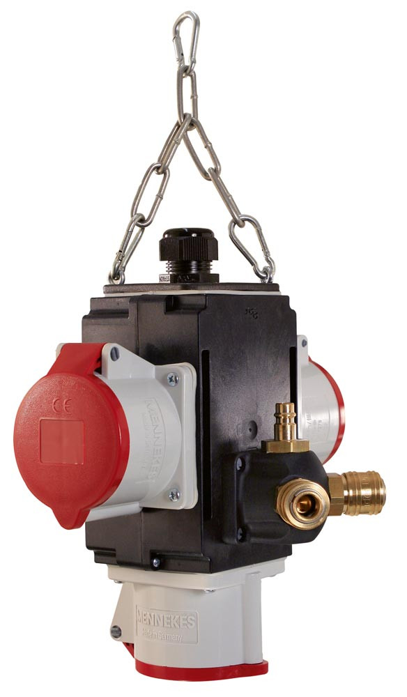 Energiewürfel, 3xCEE Steckdose 32A,400V, 5-polig, mit Druckluftanschluss, für Leitung 3x1,5 mm-5x6 mm