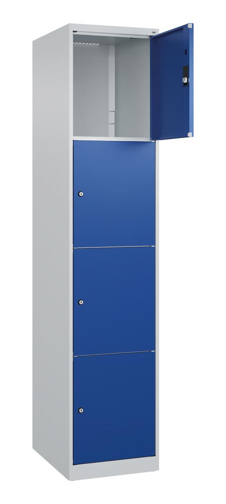 Fächerschrank, BxTxH 400x500x1850 mm, 1x4 Fächer, Abt.B 400 mm, bodenstehend, Schloss, glatte Türen, RAL 7035/5010 EP560044