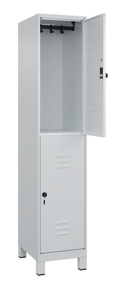 Fächerschrank, doppelstöckig, BxTxH 400x500x1950 mm, 1x2 Fächer, Abt.B 400 mm, Drehriegel, Füße, RAL 7035 EP559796