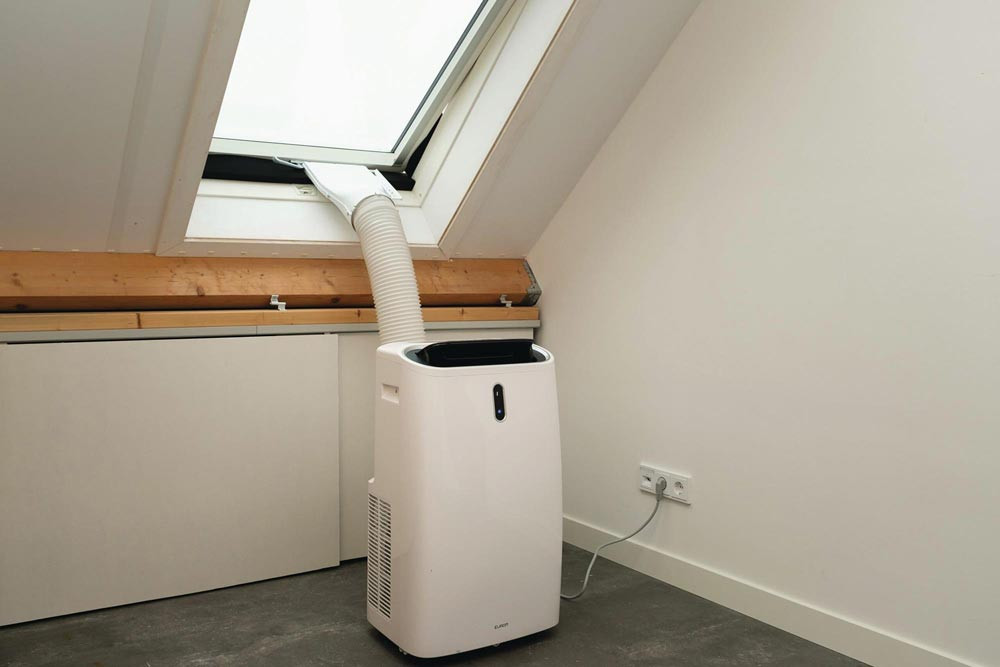 für die Entlüftung von mobilen Klimageräten · zum Absaugen warmer Luft · mit den 3 mitgelieferten Schaumstoffstücken fixiert · geeignet für Klimageräte bis zu 18.000 BTU / 5275 W