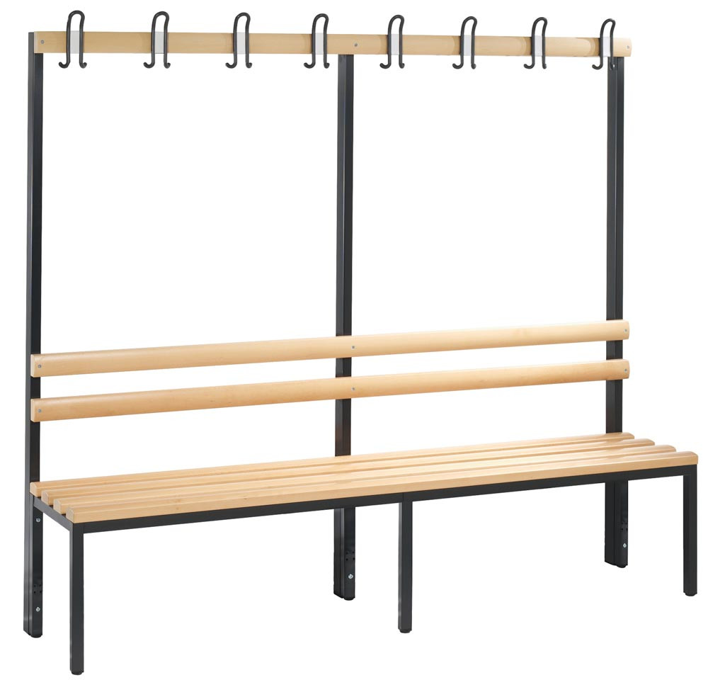 Doppelseitige Garderobenbank, Hartholzleisten, ohne Schuhrost, TxH 756x1710 mm, Länge 1000 mm, RAL 7021 EP523280