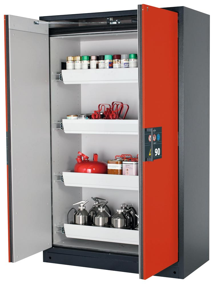 Gefahrstoffschrank, BxTxH 1193x615x1953 mm, 4 Auszugswannen, inkl. TSA, AGT, RAL 7016/1004 EP531896