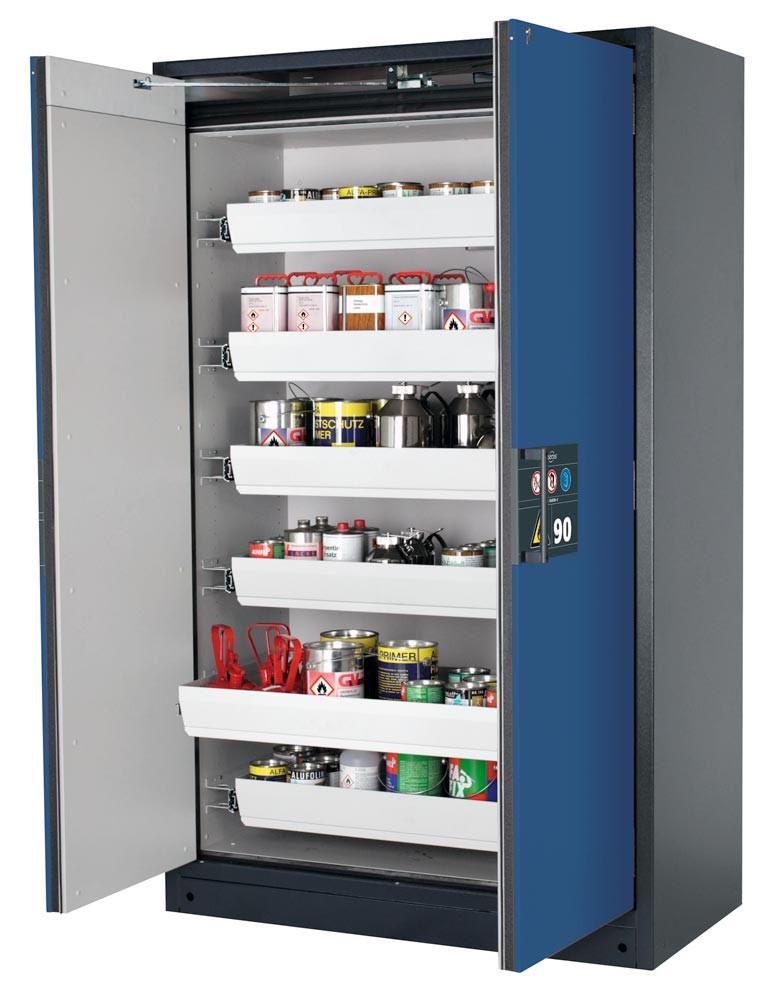 Gefahrstoffschrank, BxTxH 1193x615x1953 mm, 4 Auszugswannen, inkl. TSA, AGT, RAL 7016/5010 EP531899