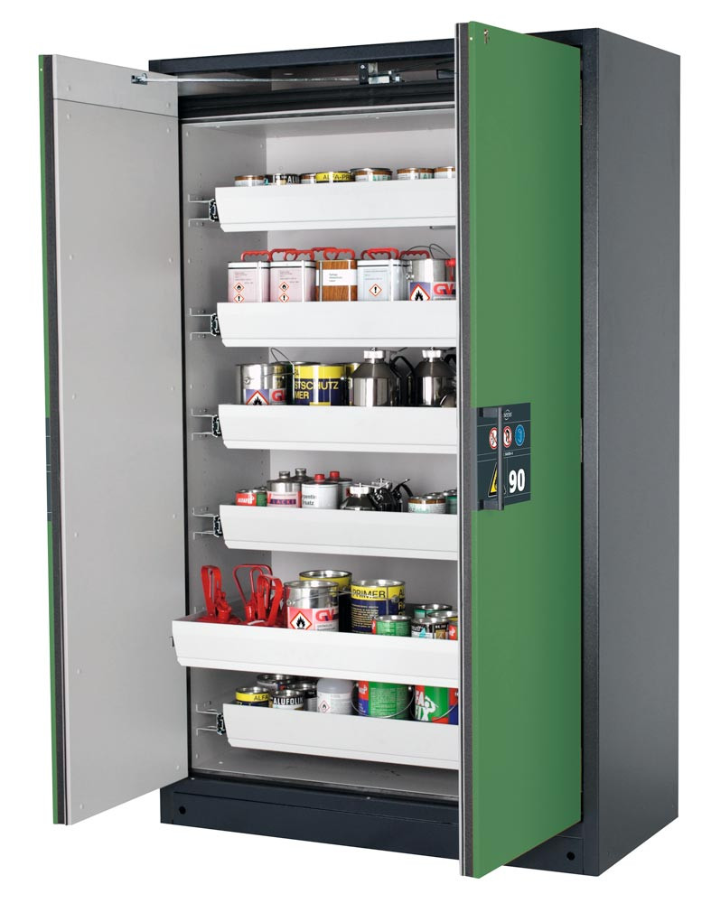 Gefahrstoffschrank, BxTxH 1193x615x1953 mm, 4 Auszugswannen, inkl. TSA, AGT, RAL 7016/6011 EP531900