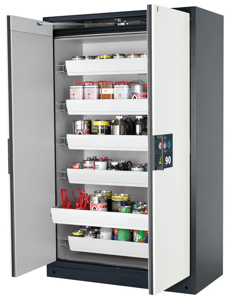 Gefahrstoffschrank, BxTxH 1193x615x1953 mm, 6 Auszugswannen, inkl. TSA, AGT, RAL 7016/9010