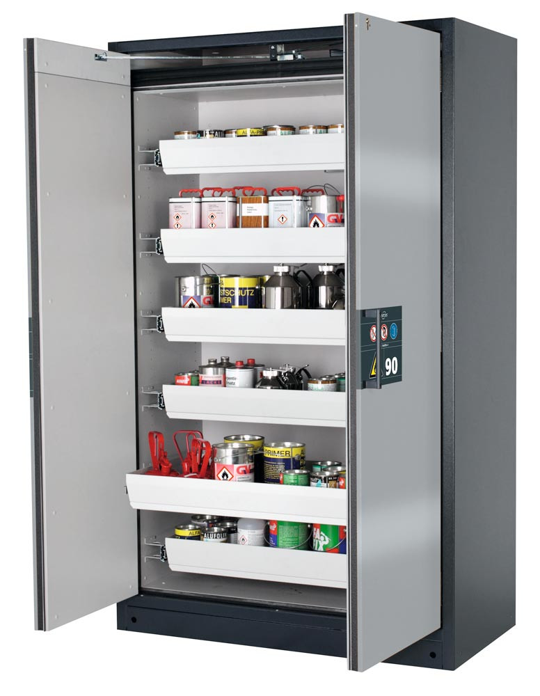 Gefahrstoffschrank, BxTxH 1193x615x1953 mm, 4 Auszugswannen, inkl. TSA, AGT, RAL 7016/1004 EP531896