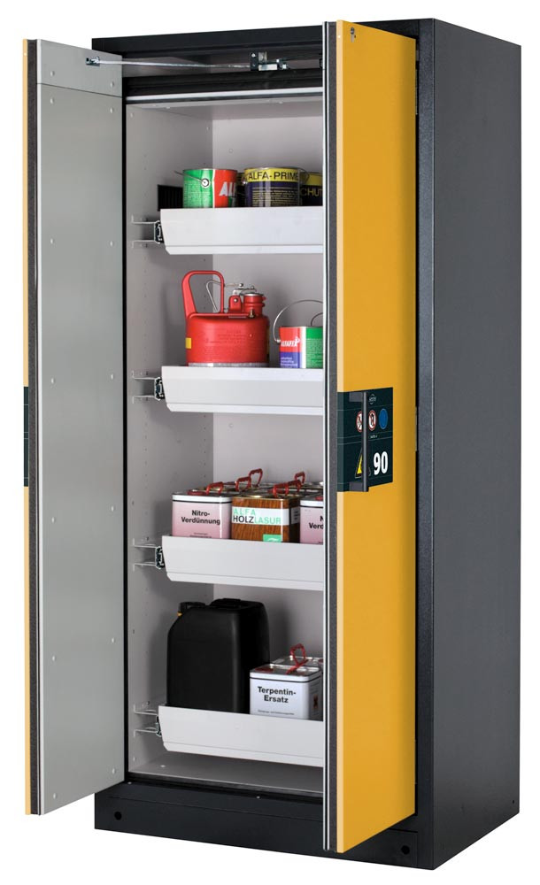 Gefahrstoffschrank, BxTxH 893x615x1953 mm, 4 Auszugswannen, inkl. TSA, AGT, RAL 7016/1004