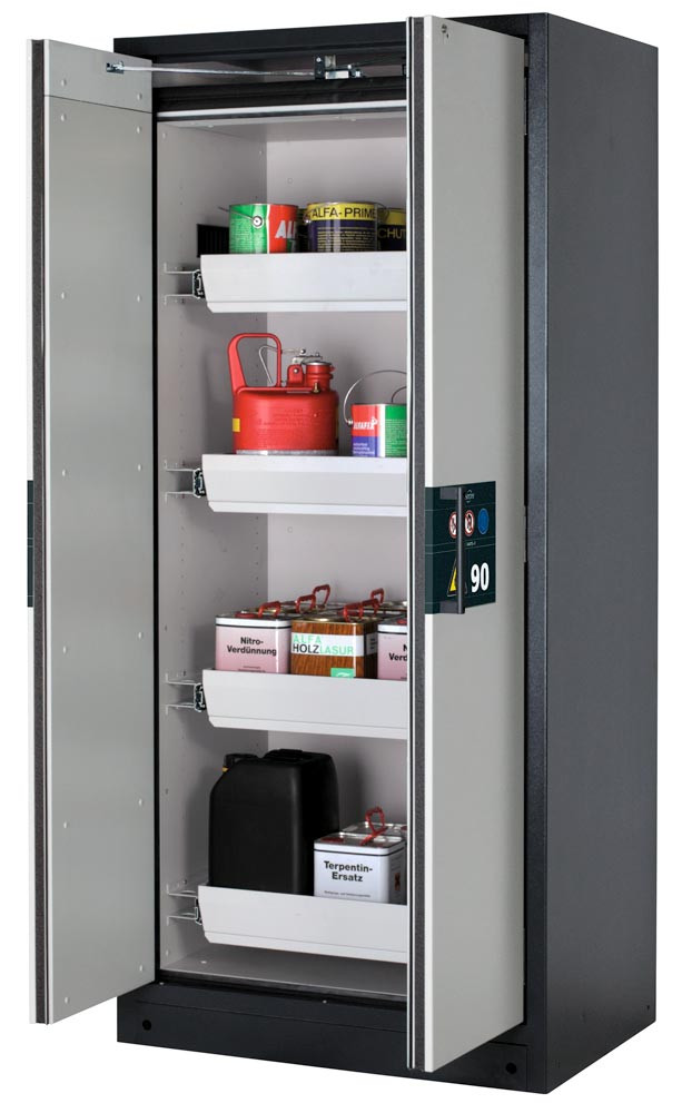 Gefahrstoffschrank, BxTxH 893x615x1953 mm, 4 Auszugswannen, inkl. TSA, AGT, RAL 7016/7035