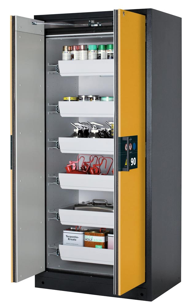 Gefahrstoffschrank, BxTxH 893x615x1953 mm, 6 Auszugswannen, inkl. TSA, AGT, RAL 7016/1004