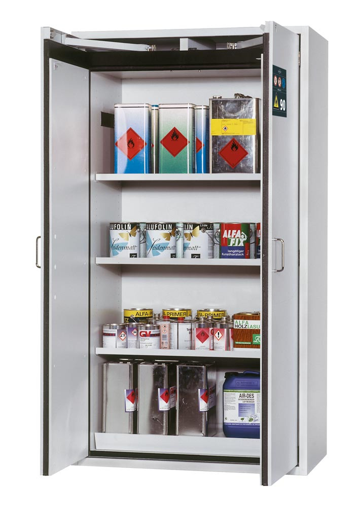 ∙ Zur vorschriftsmäßigen Lagerung von Gefahrstoffen in Arbeitsräumen gemäß DIN EN 14470-1 (Typ 90) und TRGS 510 Anhang 1