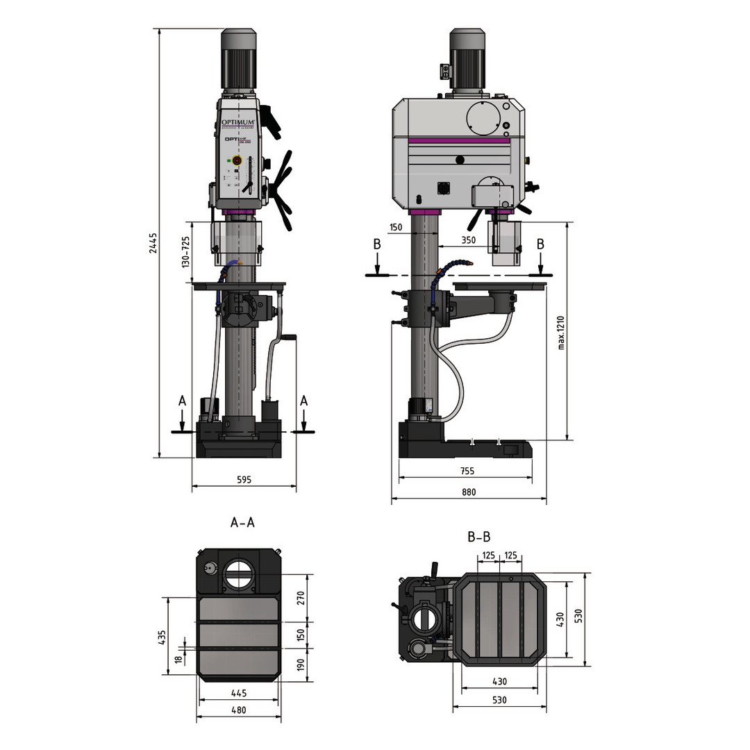 • Extrem stabile, dickwandige Gusssäule für hohe Kraftaufnahme