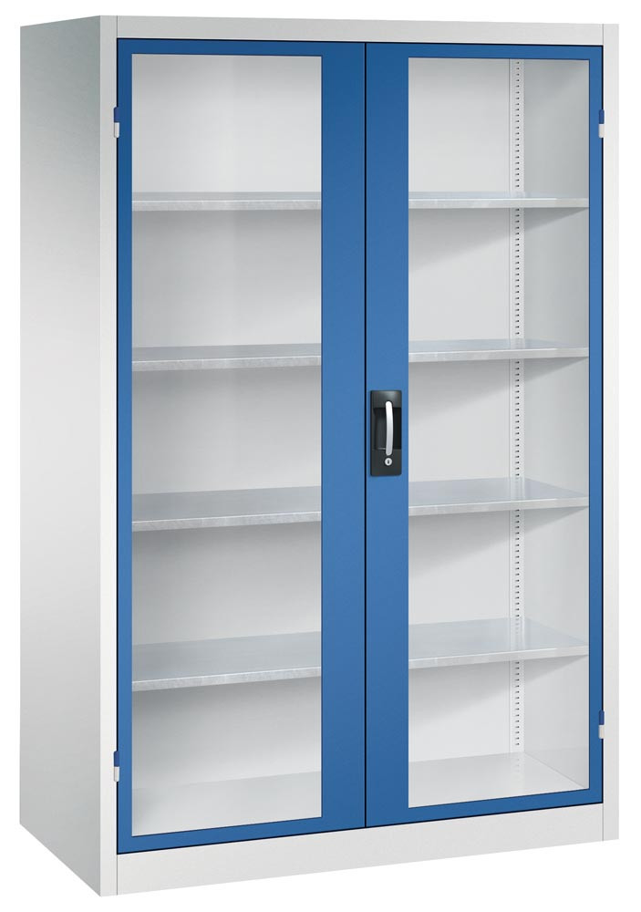 Großraum-Werkzeugschrank mit Sichtfenstertüren, 4 Verstellböden, BxTxH 930x600x1950 mm, RAL 7035/5010 EP533481