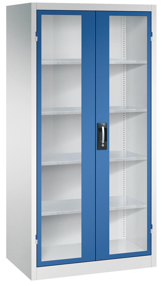 Großraum-Werkzeugschrank mit Sichtfenstertüren, 4 Verstellböden, BxTxH 930x600x1950 mm, RAL 7035/5010 EP533481