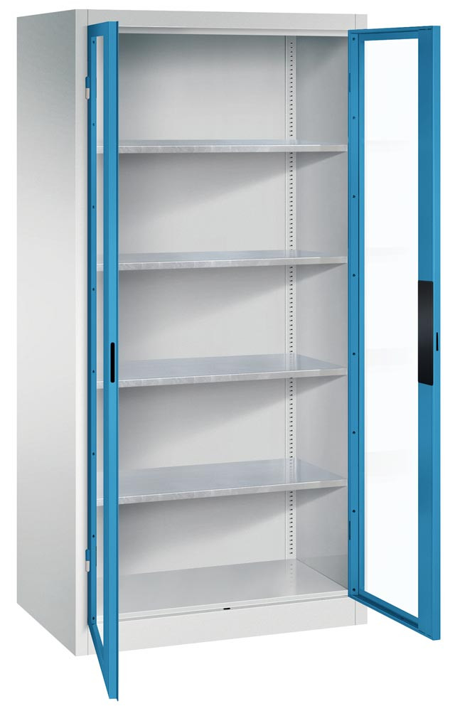 Großraum-Werkzeugschrank mit Sichtfenstertüren, 4 Verstellböden, BxTxH 930x600x1950 mm, RAL 7035/5010 EP533481