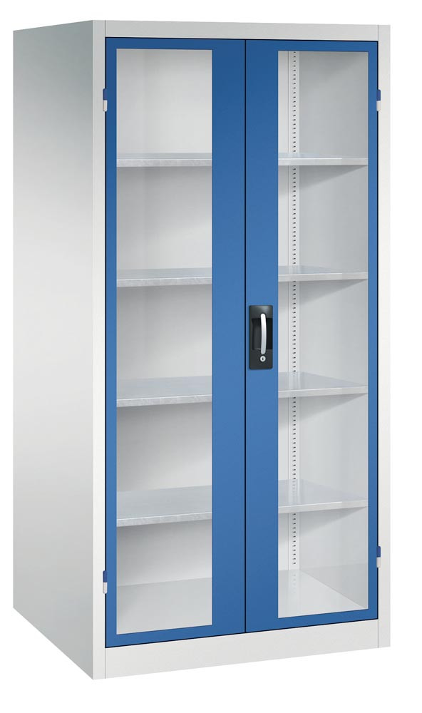 Großraum-Werkzeugschrank mit Sichtfenstertüren, 4 Verstellböden, BxTxH 930x600x1950 mm, RAL 7035/5010 EP533481