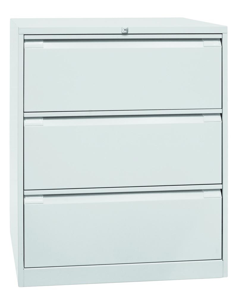 Hängeregistraturschrank, BxTxH 800x622x1016 mm, doppelbahnig, 3 Schubladen, Griffleiste, lichtgrau