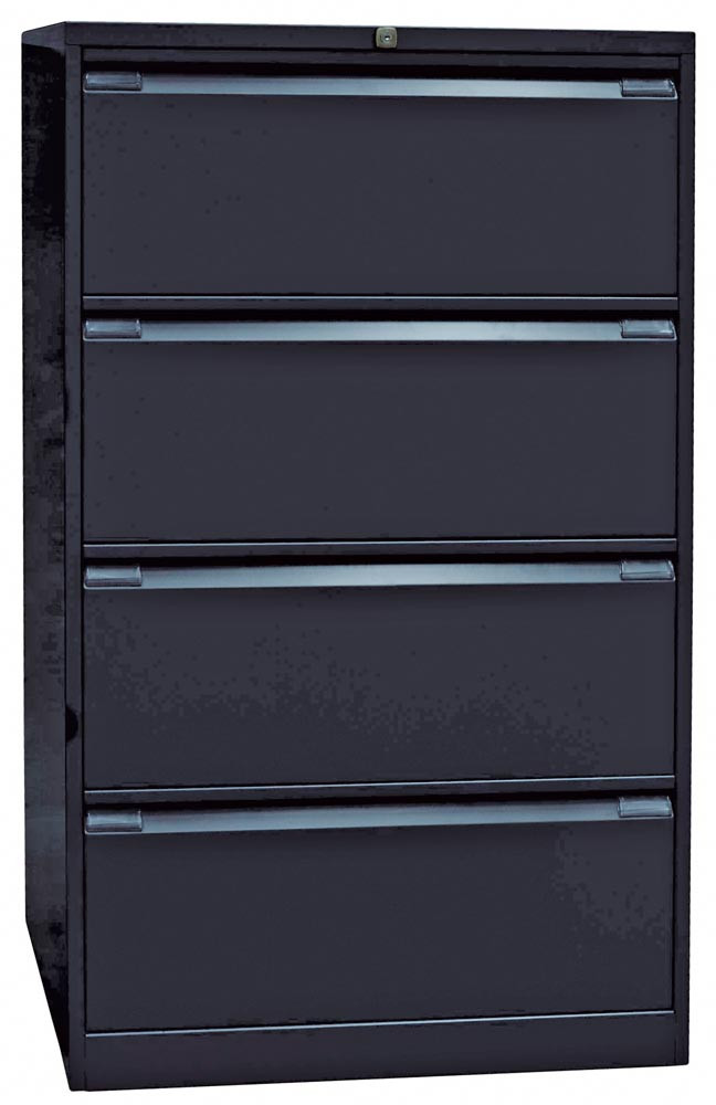 Hängeregistraturschrank, BxTxH 800x622x1321 mm, doppelbahnig, 4 Schubladen, Griffleiste, schwarz