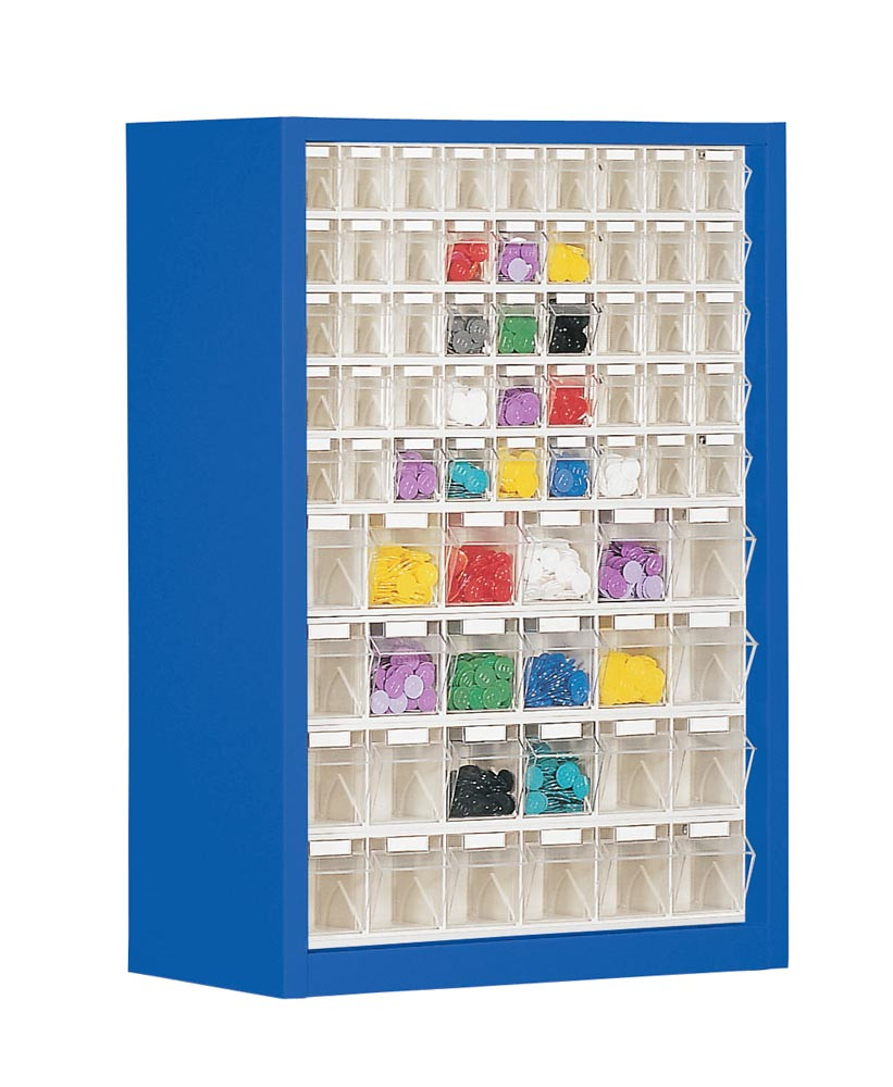 Hängeschrank, BxTxH 665x250x910 mm, 69 Kästen, 45xGr. 9, 24xGr. 6, RAL 5010 enzianblau